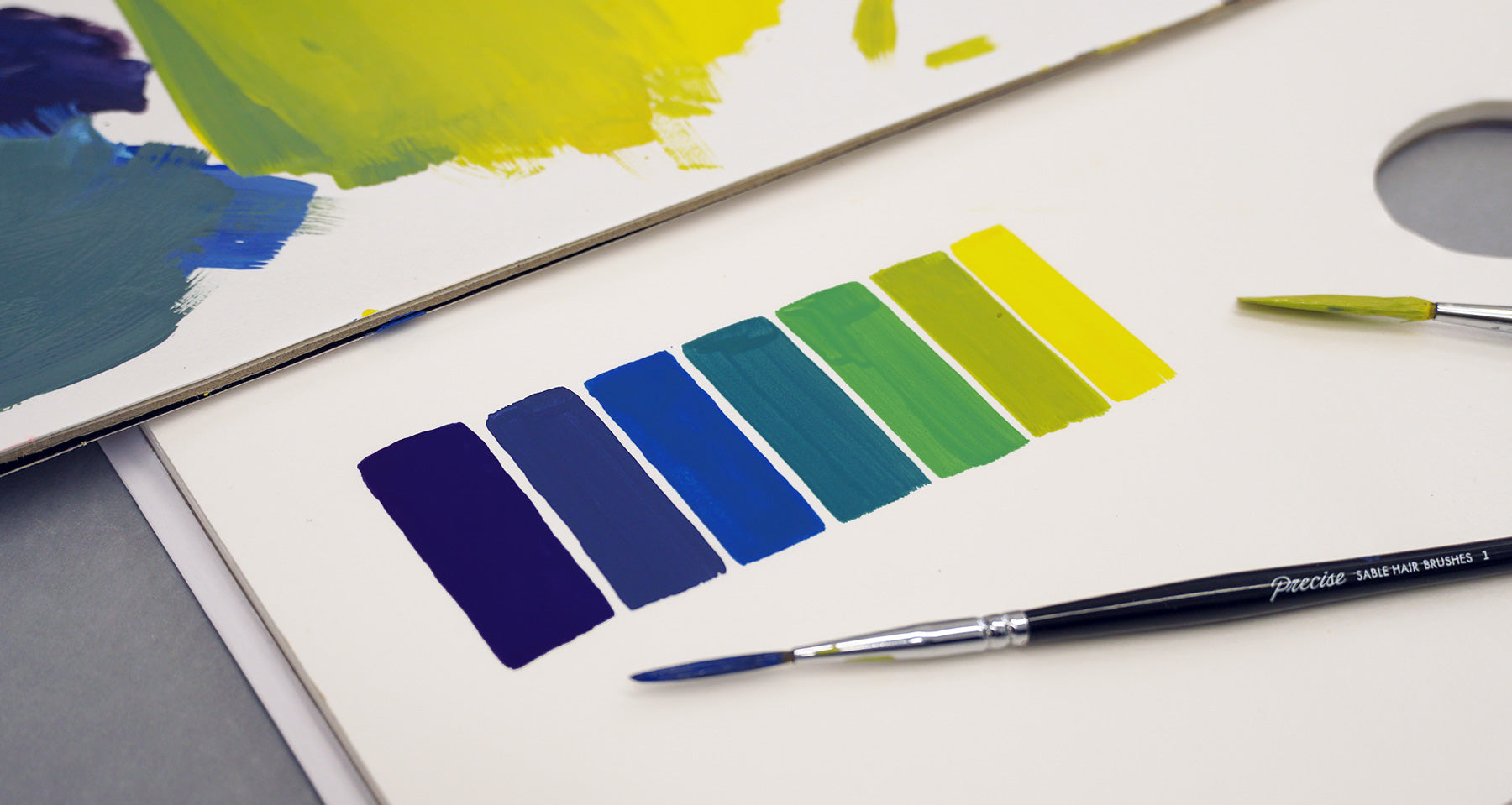 Once you’ve mixed all your colours, paint swatches side by side on your paper pallet or clean surface. Let them dry completely and evaluate the colours as a set.
